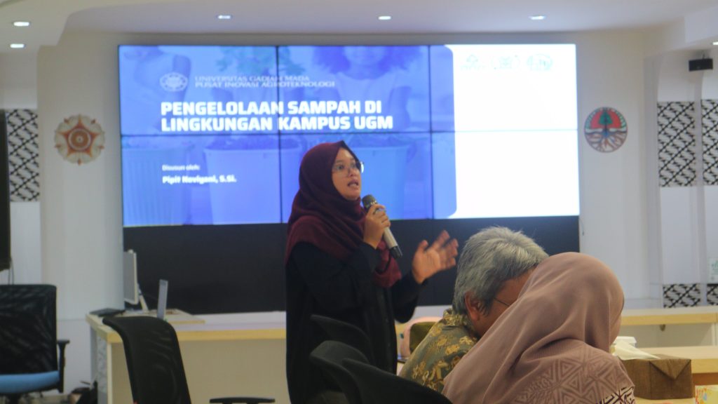 Sementara itu, Pipit Noviyani, S.Si., narasumber dari Pusat Inovasi Agroteknologi (PIAT UGM), menekankan pentingnya perubahan paradigma pengelolaan sampah dari sekadar “kumpul-angkut-buang” menjadi pengelolaan berkelanjutan yang memandang sampah sebagai sumber daya.