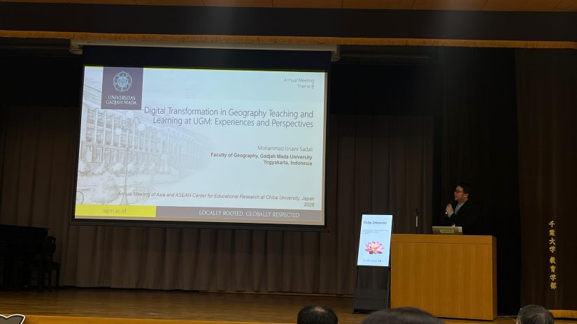 Delegasi dari Fakultas Geografi Universitas Gadjah Mada, Mohammad Isnaini Sadali, S.Si., M.Sc., yang juga merupakan dosen Fakultas Geografi UGM memaparkan hasil kajiannya terkait “Digital Transformation in Geography Teaching and Learning at UGM: Experiences and Perspectives” dalam Annual Meeting of Asia and ASEAN Center for Educational Research, pada Rabu (07/01/26) hingga Kamis (08/01/26) di Chiba University, Jepang.